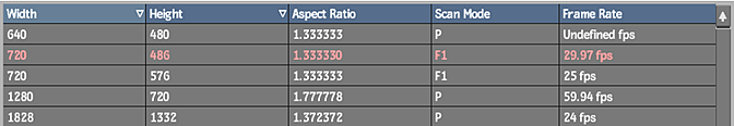 The parameters listed in the Default Resolutions menu act as default values for all listed resolutions. For example, if you want to change the default values for PAL clips, you must change the values for the PAL entry, which is the entry that has a width value of 720 and a height value of 576. If you are working with a PAL archive created in an earlier version, the aspect ratio would have automatically been set to 1.3333, but you may want to restore all your PAL archives with 16:9 aspect ratio. You can change this setting by changing the aspect ratio to 16:9 for the PAL entry.