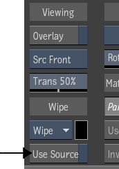 - To display the source as an overlay of the result image, enable Overlay (Tab). You can apply transformations to the source before you apply the wipe: