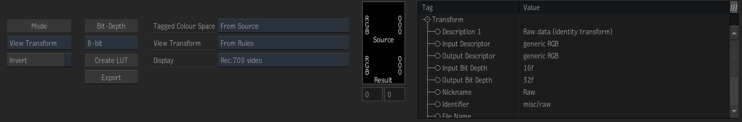 By enabling the Invert button, you are able to convert from a display space to a working colour space via an inverse view transform. This is sometimes useful for bringing video material into a scene-linear working space. When these scene-linear values later play out through the forward view transform, the result will look the same as the original material.