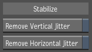 The Remove Vertical Jitter and Remove Horizontal Jitter buttons remove motion in one direction only. Enable the Remove Vertical Jitter button to remove vertical jitter only. Movement on the horizontal (X) axis, such as a camera pan, is not affected. Enable the Remove Horiztonal Jitter button to remove horizontal jitter. Movement on the vertical (Y) axis is not affected.