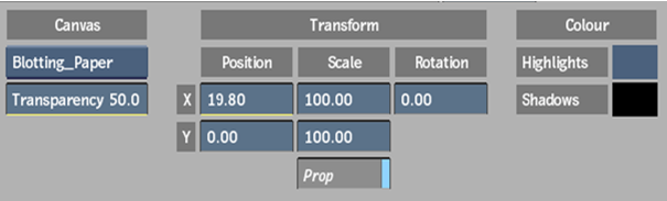 - Displays the percentage of transparency applied to the Canvas effect. Editable.