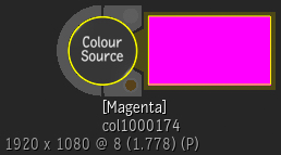 The Colour Source node includes eight colour pots for storing and selecting customized colours for creating frames. You can specify a frame's resolution and bit depth.