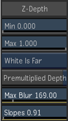 - Displays the upper limit of the Z-Depth values. Pixels with higher values are mapped to white. Editable.