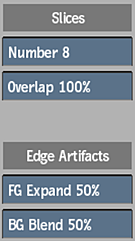 - Displays the amount of blending overlap between adjacent slices. Editable.