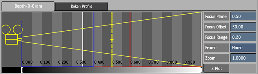 - Displays the number of slices to blend to determine the Z-Depth interpolation of a depth-of-field focus blur. You can see the slices in the depth-o-gram to allow a better understanding of the focus plane behaviour, and to help define the number of slices required, depending on your Z-depth colour information. Editable.