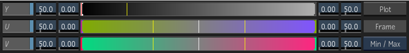 - Select whether to frame the histogram based on minimum and maximum slider values, the full range of histogram values, the plot and reference colours, or the [0:1] vertical and horizontal range (Home).