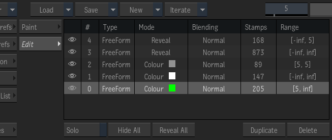 - Open the Edit list, and select the "Paint" stroke. From the Edit list, the # column displays the stroke Identifier.