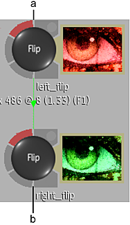 (a) Flip node connected to left eye is edited (b) Settings are automatically mimicked on Flip node connected to right eye