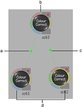 Note: To mimic nodes, the nodes must be of the same type. For example, you can link between Flip nodes but not between a Flip node and a Colour Correct node. Some nodes, such as Action or Modular Keyer do not support the Mimic Link option. In this case, you can see an error message in the message bar.