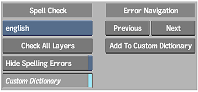 In the Spell Check menu, you can check the spelling of the text in a text layer. When spelling errors are encountered, a red line is drawn through words not in its dictionary. By default, the spell checker uses the language and dictionary installed with the operating system to verify the spelling of words. You can also create your own custom dictionary.