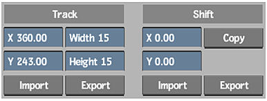 Import and export tracking and shift data values to an ASCII file using the Import and Export buttons located in the Track and Shift areas of the Stabilizer menu.