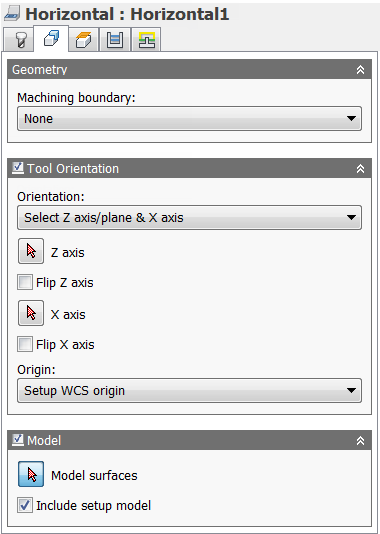 For surfaces that are not exactly horizontal, Inventor HSM interpolates between the axial and radial (wall) stock to leave values, so the stock left in the axial direction on these surfaces might be different from the specified value depending on surface slope and the radial stock to leave value.