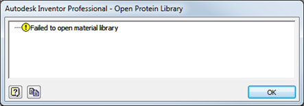 - If you edit a material library while someone is still using Inventor the following error message displays: