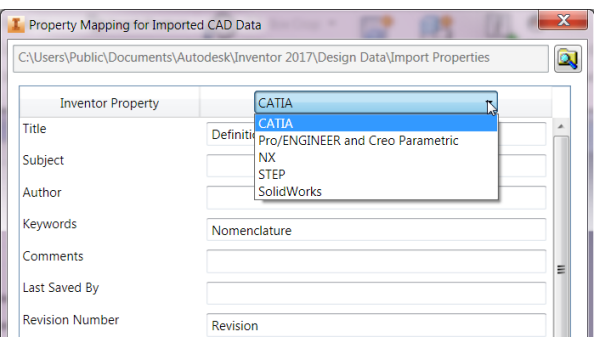 For more information, see To Map Properties from Imported CAD Data to Standard Inventor Properties.