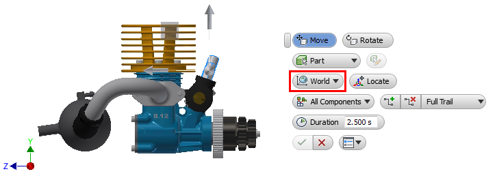 You can now specify tweak direction using the local (component) coordinate system or the world (presentation) coordinate system in the mini-toolbar. For multi-selection sets the local coordinate system aligns with the first object selected.
