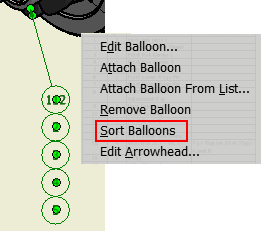 You can now reorder attached balloons by their value. First, attach balloons using the Attach Balloon From List context menu option. Then, after closing the Attach Balloon dialog box, right-click on the balloon stack and select Sort Balloons. Values are automatically reordered.
