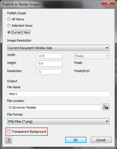 . At the bottom of the dialog box, check the box for Transparent Background.