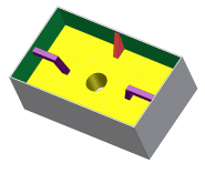 Selecting Match Shape creates a flood-fill type solution. The open ends of the profile extend to a coedge, or face. The required faces quilt together to form a complete intersection with the extruded body. The Match Shape extrusion generates a stable and predictable body for topology changes on the defining faces. The extrude feature is not dependent upon a strictly defined profile consisting of sketch lines and referenced edges.
