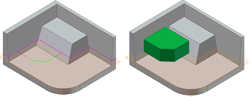 Note: If you select a closed profile (not a closed region) and flood-fill everything outside the profile, the bucket analogy also applies, as shown in the following illustrations: