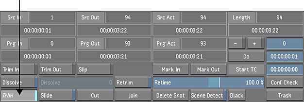 Tip: If the Editing While Grading button is enabled in the User settings, you can start interactively trimming shots from any menu by pressing