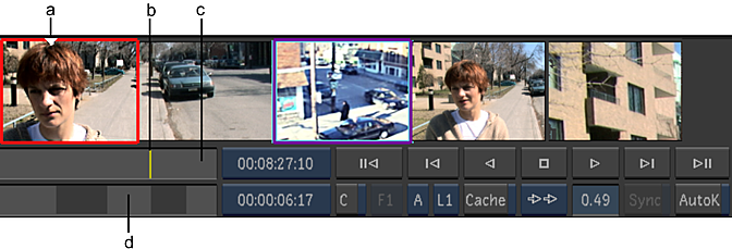(a) Storyboard position arrow (b) Shot positioner (c) Shot timebar (d) Scene timebar