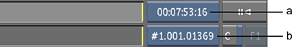 The Source Timecode field indicates the source timecode for the current frame. The timeline information field indicates the location of the current frame, as well as other information pertaining to the shot.