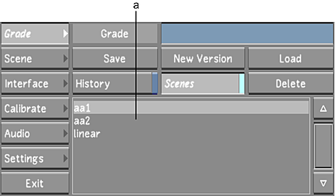 You can select a scene from either the Scene or Grade menu.