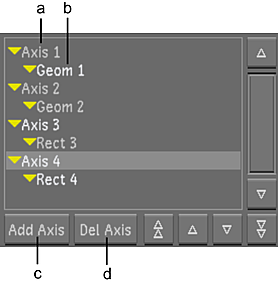 (a) Axis (b) Geometry (c) Add Axis button (d) Del Axis button
