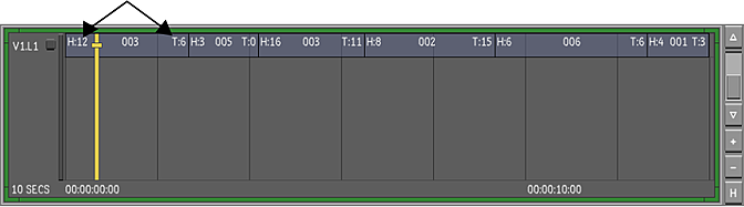 When you use A-mode to sort your timeline, your shots are organized according to their time location within the sequence (i.e., the record timecode). The shots are displayed one after another on a single layer and any dissolves and retimes are not displayed.