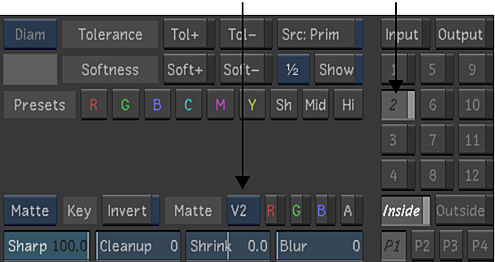 In the following screenshot, the matte on the V2 track is applied to the second secondary colour grading layer.