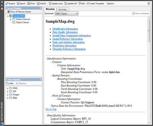 View, create, and edit metadata (the who, what, when, where, why, and how) about your spatial information.