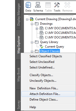 Start by creating a map and attaching the MyDefinition.xml object class definition file and the source drawings.