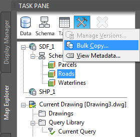 Copy the Roads layer from SDF format to SHP format using the Bulk Copy feature.