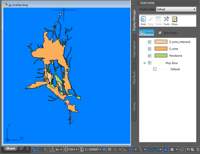 This map overlays two layers (a flood zone and an enterprise zone). You can use the overlay to see where the two intersect. That area becomes a new layer, which you can style and save out to a file and use as a separate data store.