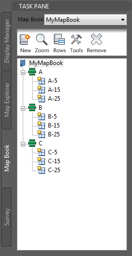 When you generate the map book, the tiles are listed in the Task Pane, and one layout tab is displayed for each tile.