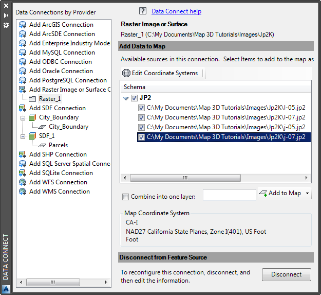 Connect To Data. The folder contains multiple JPEG 2000 files, each of which covers a small area of the city of Redding. Since there are multiple items and you might not want all of them, they are not selected automatically.