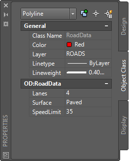 The Object Class tab of the Properties palette displays the properties associated with the class of the selected object.