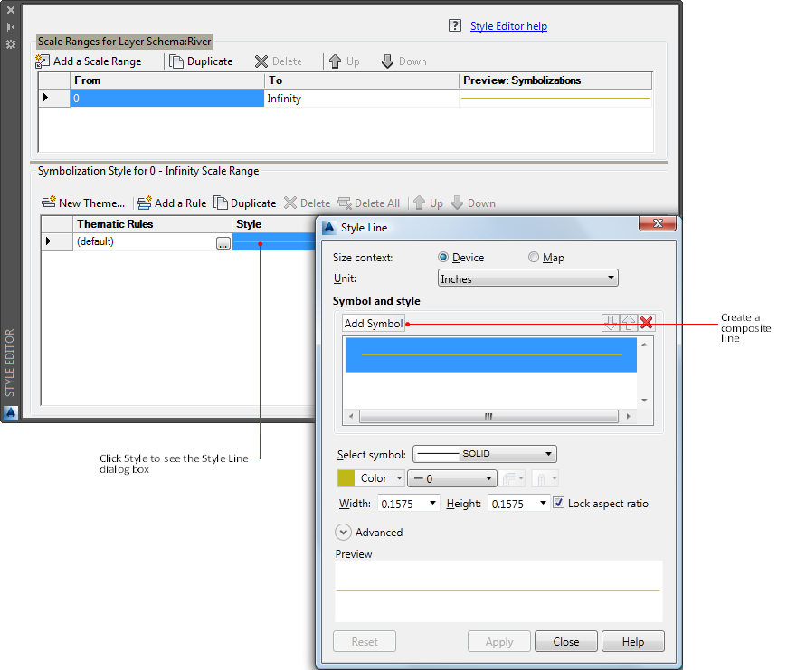 Now define scale ranges and assign styles to them. Each scale range represents the zoom levels at which a style is displayed. When you are zoomed between the levels of a range, the style for that range is displayed.
