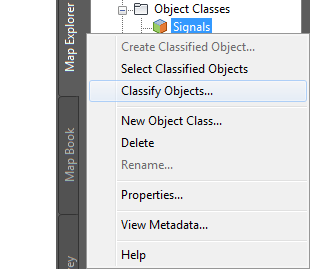 Right-click the Signals object class in Map Explorer in the Task Pane and click Classify Objects.
