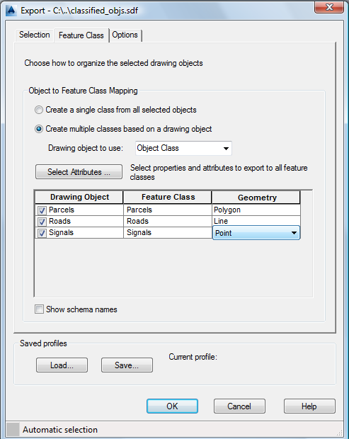 The new SDF file will contain one feature class for each object class you selected. The properties of each feature class match the attributes of its corresponding object class.