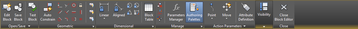 A new tab called Block Editor appears in the ribbon, and a new drawing opens in the Block Editor.