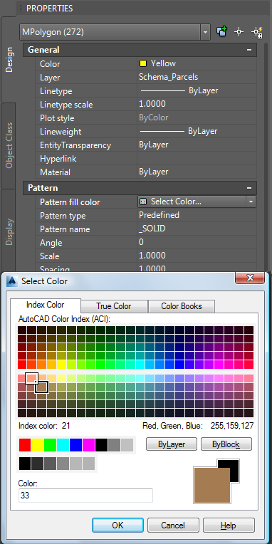 Change the fill color of all objects in the Parcels object class using the Properties palette.