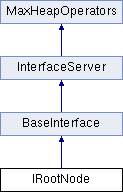 The IRootNode interface is the interface to root nodes in the scene. There is a root node at the top of the scene, and each scene xref has a root node at the top of its tree. Each root node holds its immediate xref scene children root nodes. All methods of this class are implemented by the system.