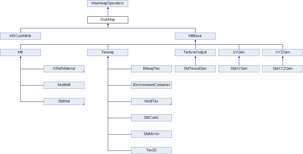 Class MtlBase, Class Texmap, Class ParamDlg, Class ReferenceTarget.