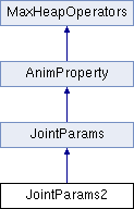 This class is derived from class JointParams, which is the original data structure that holds joint parameter settings. This new derived class adds the preferredAngle parameter. Note that JointParams is not a virtual class and as such a flag definition of JNT_PARAMS2 is added in order to differentiate a JointParams2 instances from a JointParams instance. When the JNT_PARAMS2 flag is set, a JointParams pointer can be safely cast to a JointParams2.