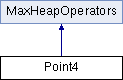 This class describes a point using float x, y, z and w coordinates. Methods are provided to add and subtract points, multiply and divide by scalars, and element by element multiply and divide two points.
