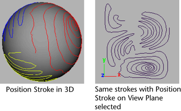 This option is only useful on strokes painted on objects. It has no effect on strokes painted on the view plane or grid plane of the perspective view. You can use it to create textures from strokes painted on 3D objects (for details, see Create textures from painted 3D objects). Select one of the following: