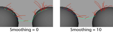 The path of a stroke is defined by an underlying stroke path curve which is comprised of CVs. Just like using the Pencil Curve Tool, painting a stroke can create irrelevant CVs. Use this option to dampen the effects on the stroke path curve of spurious or misplaced CVs by recalculating the smoothest path through the CVs.