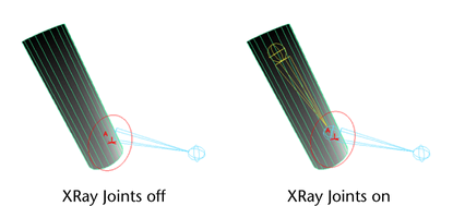 Turn this option on to have wireframe joints display on top of the mesh you are painting. This lets you view the mesh in a shaded mode and easily select wireframe Influence objects without switching between wireframe and shaded views.
