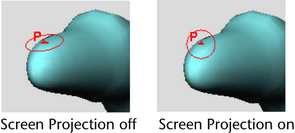When this option is off (the default), the brush is oriented along the surface. When this option is on, the brush is oriented on the view plane and the stamp is projected on the selected surface.